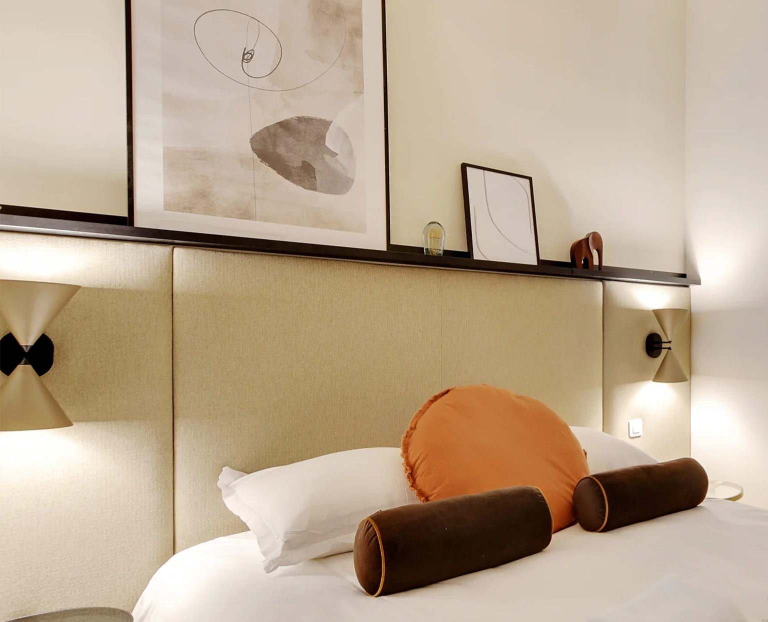 Cette approche permet de conjuguer design, confort et praticité, sans compromettre l’harmonie visuelle de la chambre. Chaque création est pensée en fonction de l’identité du lieu, qu’il s’agisse d’un projet résidentiel, hôtelier ou d’Appart’Hôtel.