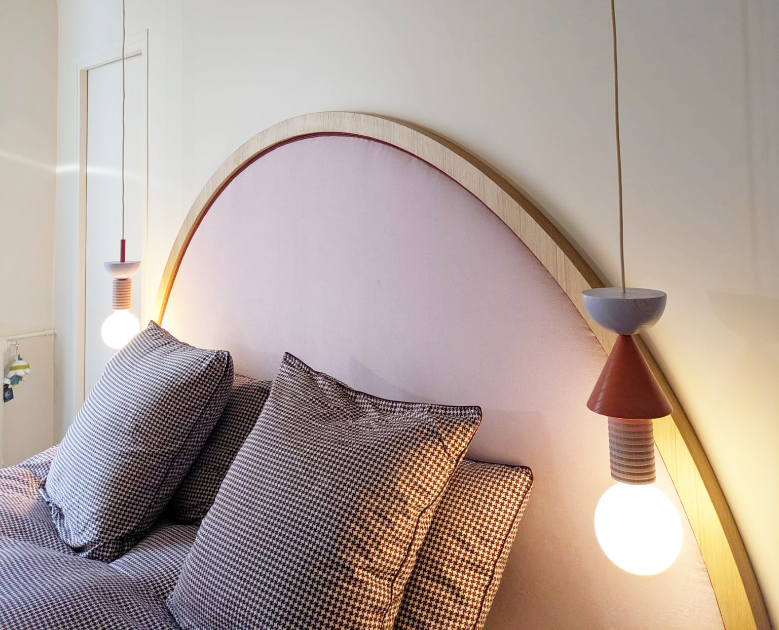 Dans le cadre de nos projets, chaque tête de lit est conçue sur mesure pour s’intégrer pleinement à l’identité de la chambre. Les formes, les teintes et les finitions sont travaillées avec précision afin de créer des ambiances uniques, tout en composant avec les contraintes techniques propres à chaque projet.